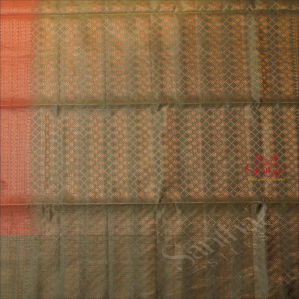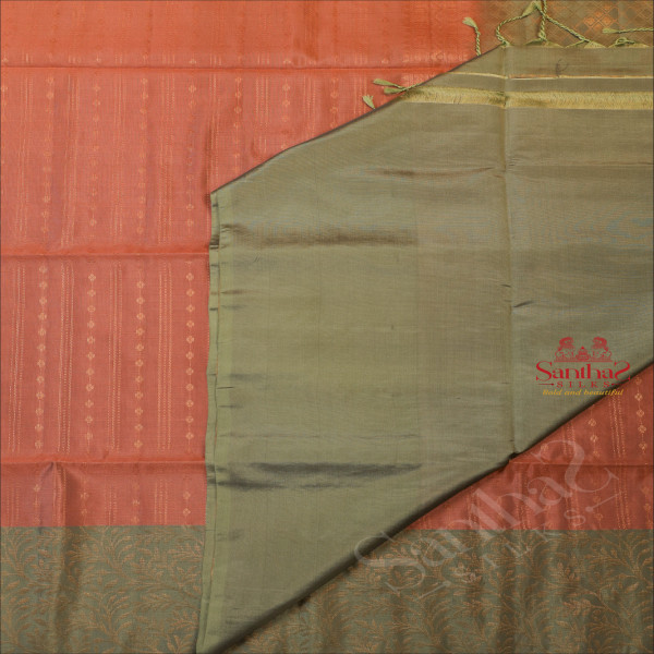 DUSTY PINK COLOUR BODY WITH GOLDEN ZARI STRIPS WITH CONTRAST BLOUSE & BORDER