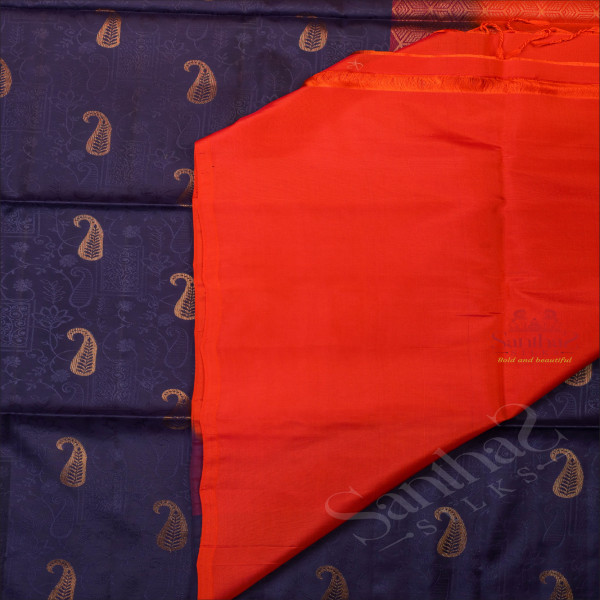 DARK BLUE COLOUR BODY WITH GOLDEN ZARI MANGO BUTTA WITH CONTRAST BLOUSE & BORDER
