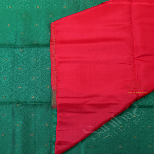 GREEN COLOUR BODY WITH GOLDEN ZARI BUTTA AND CONTRAST COLOUR PALLU & BLOUSE