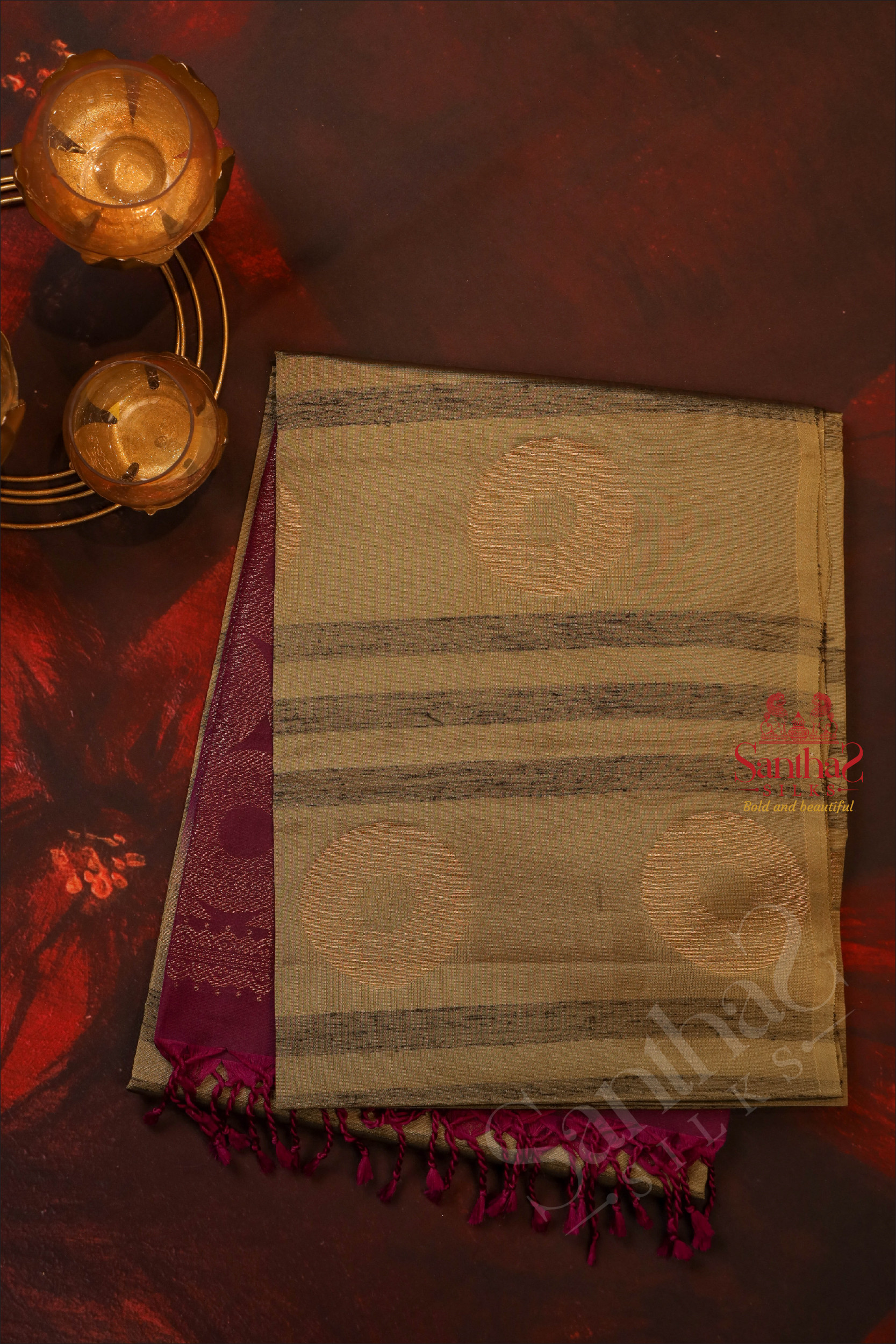 MOSS GREEN COLOUR BODY WITH GOLDEN ZARI FANCY BUTTA WITH CONTRAST BLOUSE & BORDER
