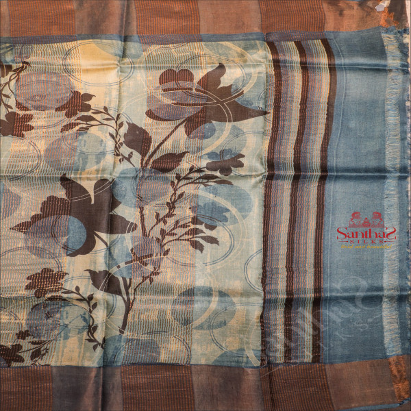 BLUE COLOUR TUSSAR SAREE IN FLORAL PATTERN WITH SELF BLOUSE