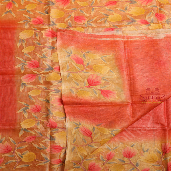 DARK PEACH COLOUR KOTA TUSSAR SAREE WITH FLORAL PRINT BLOUSE & PALLU