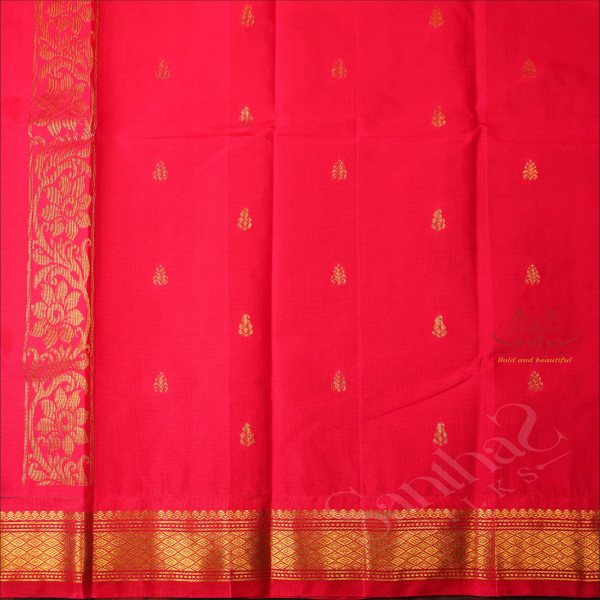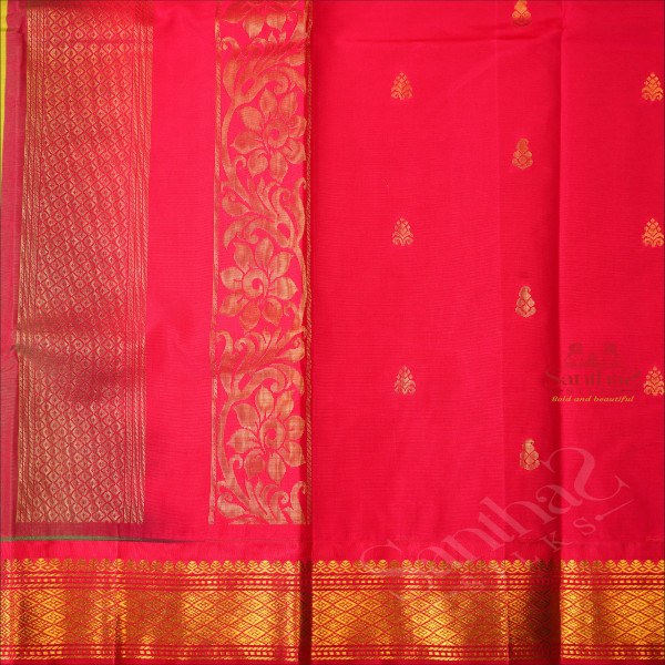 PARROT GREEN COLOUR BODY WITH GOLDEN ZARI BUTTAS & SINGLE SIDE BORDER AND CONTRAST PALLU WITHOUT BLOUSE