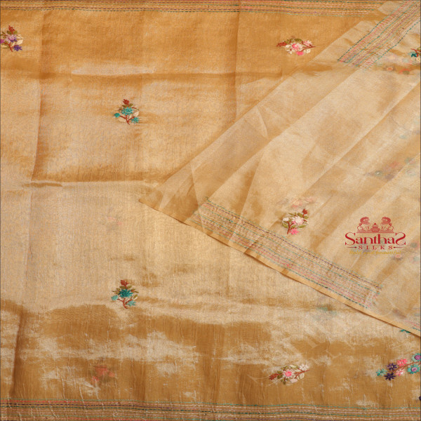 TISSUE SAREE WITH HAND EMBORIDERY WORK IN METALIC GOLD COLOUR