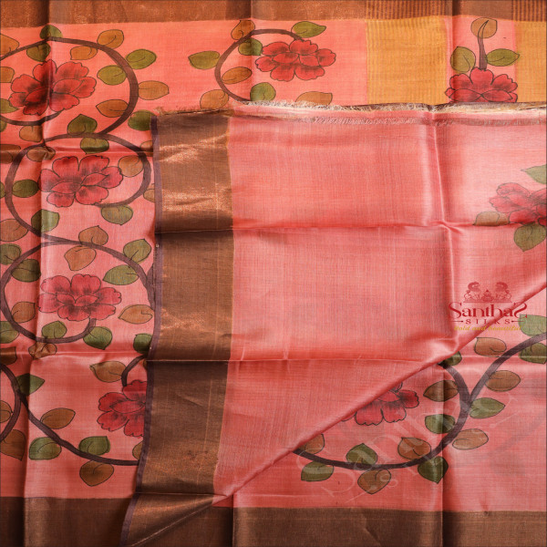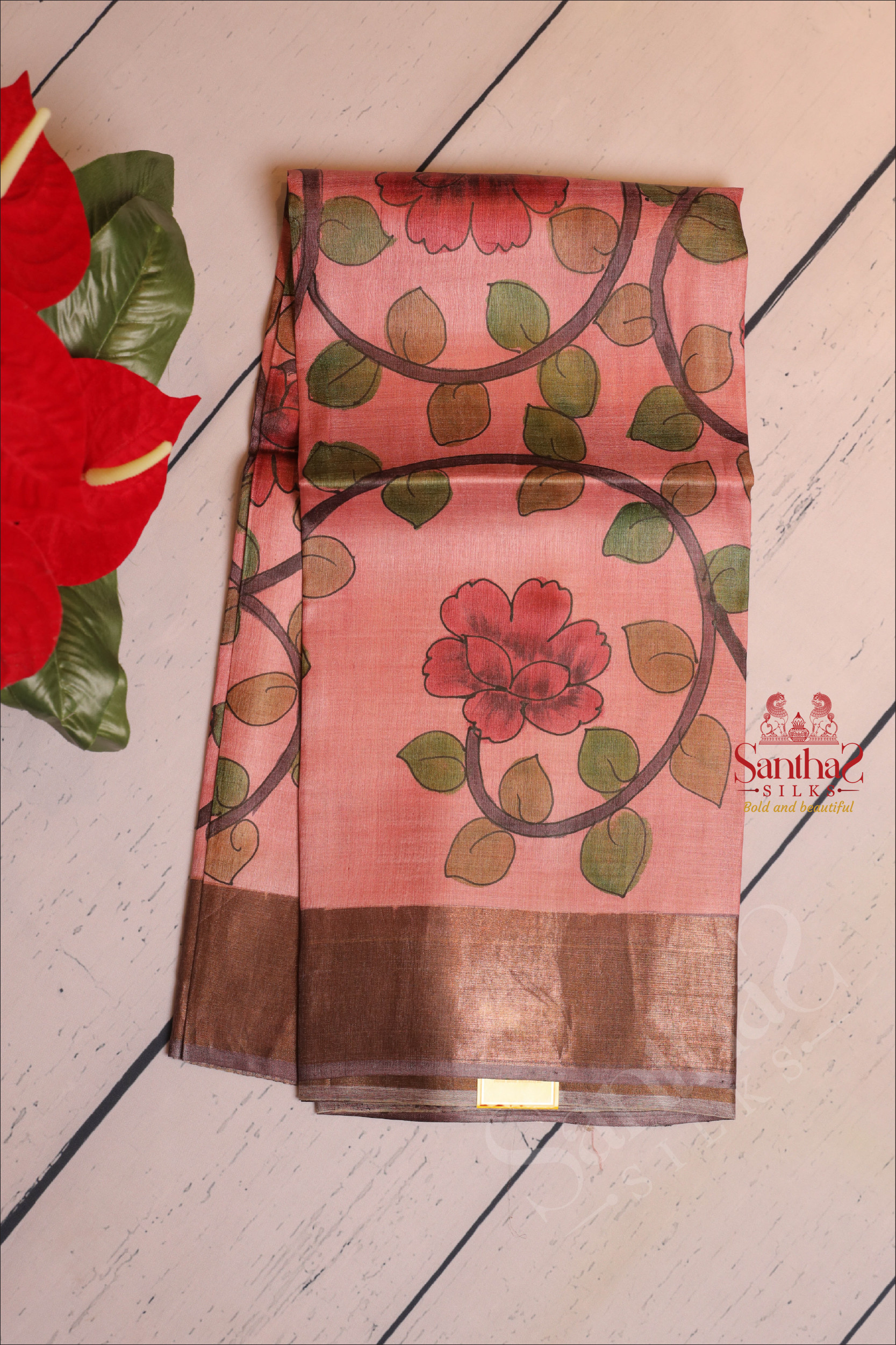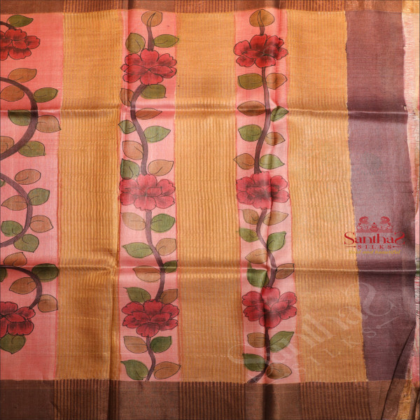 DARK PINK COLOUR TUSSAR SAREE WITH KALAMKARI PRINT WITH SELF BLOUSE