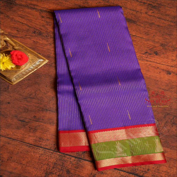 VIOLET COLOUR BODY WITH GOLDEN ZARI STRIPS & BUTTA AND CONTRAST PALLU & BLOUSE