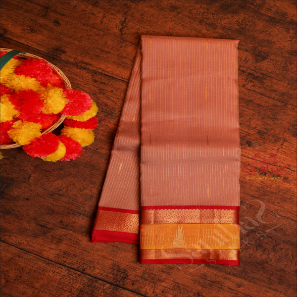 DARK PEACH COLOUR BODY WITH ZARI MOTIF WITH CONTRAST BLOUSE & BORDER