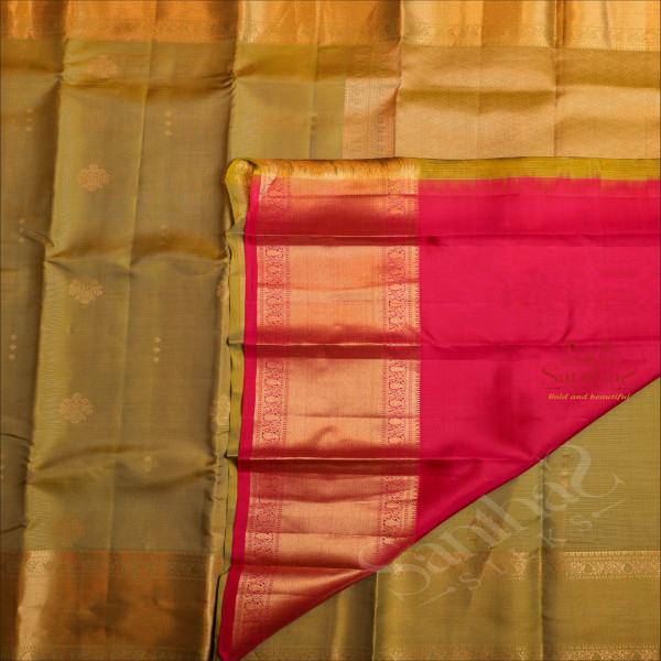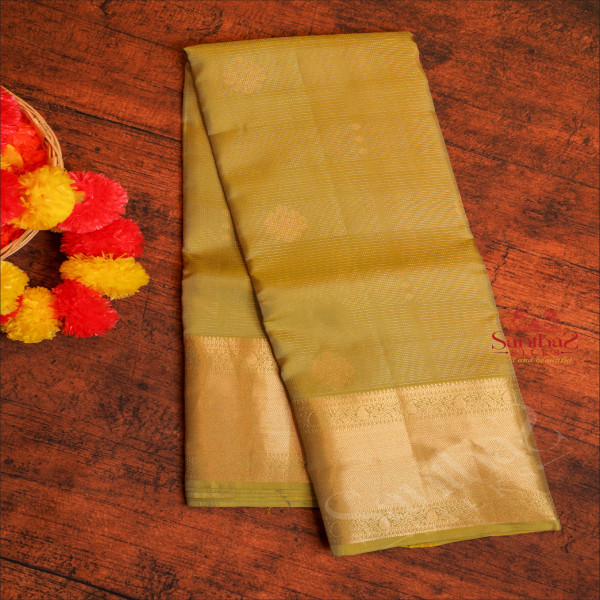 PISTHA GREEN COLOUR BODY WITH ZARI BUTTA WITH CONTRAST BLOUSE
