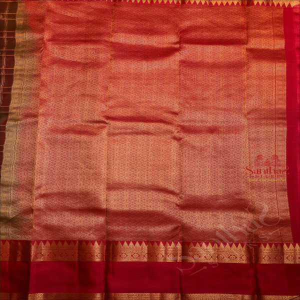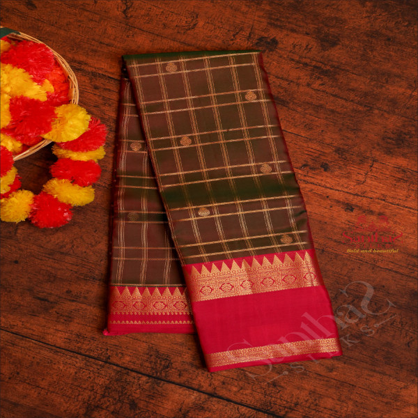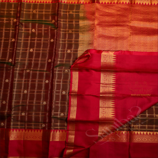 BOTTLE GREEN COLOUR CHECKED BODY WITH ZARI BUTTA AND CONTRAST BLOUSE & BORDER