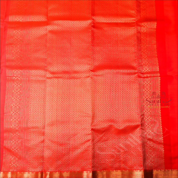 ORANGISH RED COLOUR BODY WITH SMALL BUTTAS AND SELF COLOUR PALLU WITH SELF COLOUR BLOUSE