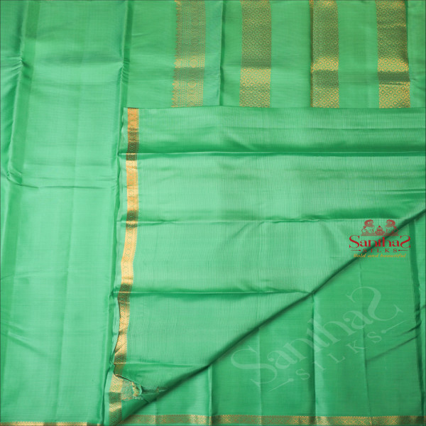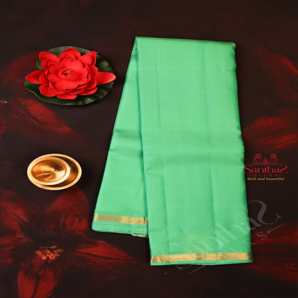 AQUA GREEN COLOUR WITH ONE INCH BORDER AND SELF COLOUR BLOUSE