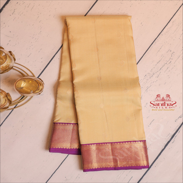 BEIGE COLOUR BODY WITH GOLDEN ZARI DIAMOND BUTTAS AND CONTRAST PALLU & BLOUSE