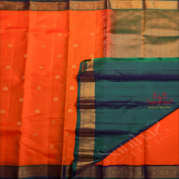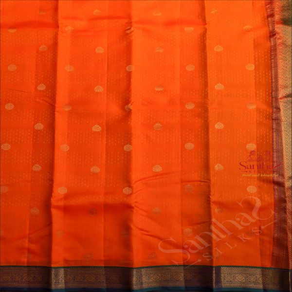 ORANGE COLOUR BODY WITH GOLDEN ZARI BUTTAS AND CONTRAST PEACOCK BLUR PALLU & BLOUSE