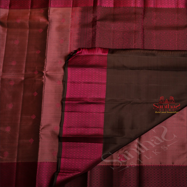 DUSTY PINK COLOUR BODY WITH PINK COLOUR THREAD BUTTAS AND CONTRAST PALLU & BLOUSE
