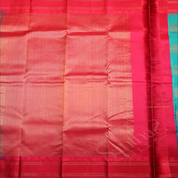 OCEAN BLUE COLOUR BODY WITH GOLDEN ZARI BIG BUTTA WITH CONTRAST BLOUSE & BORDER