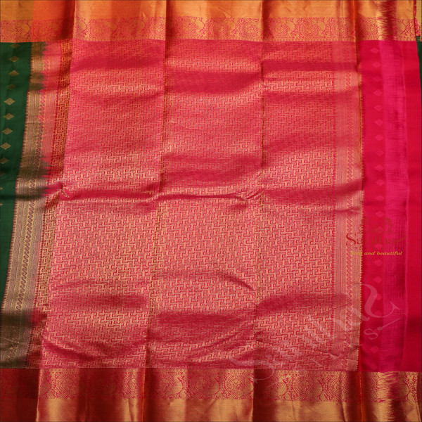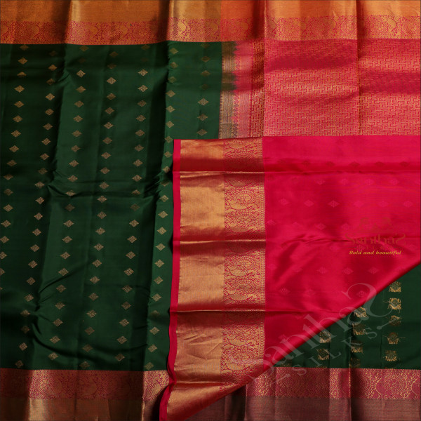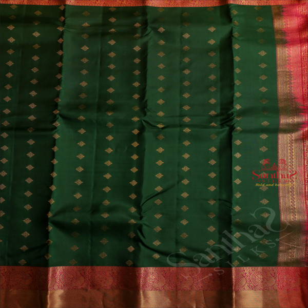 DARK GREEN COLOUR BODY WITH GOLDEN ZARI BUTTAS AND CONTRAST PALLU & BLOUSE