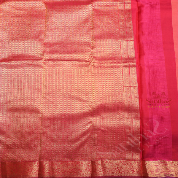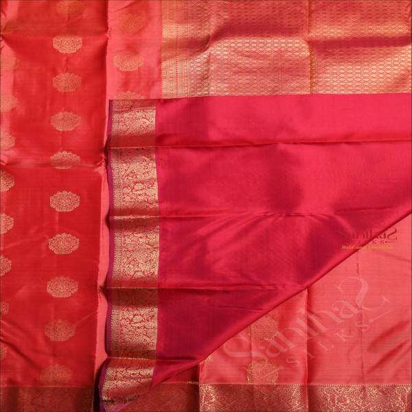 PEACH COLOUR BODY WITH GOLDEN ZARI BIG BUTTA WITH CONTRAST BLOUSE & BORDER
