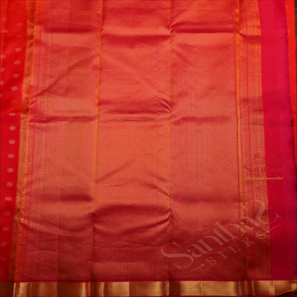 ORANGISH PINK COLOUR BODY WITH GOLDEN ZARI BUTTAS AND CONTRAST PALLU & BLOUSE