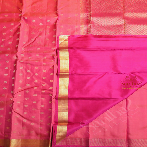 CERISE PINK COLOUR BODY WITH GOLDEN ZARI BUTTAS AND CONTRAST PALLU & BLOUSE