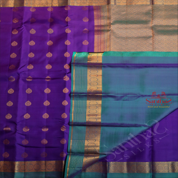 VIOLET COLOUR BODY WITH GOLDEN ZARI BUTTAS AND CONTRAST PALLU & BLOUSE
