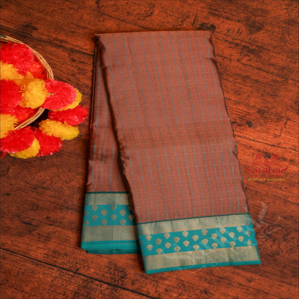 PASTEL BROWN COLOUR BODY WITH CHECKED PATTERN AND CONTRAST PALLU & BLOUSE