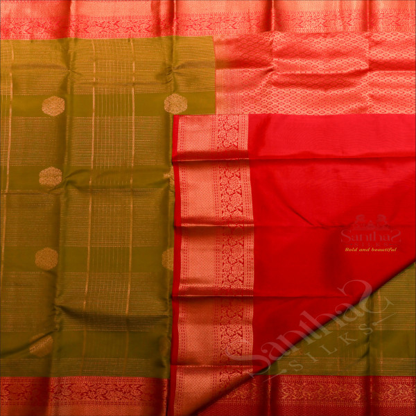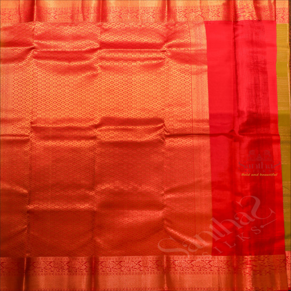 YELLOW GREEN COLOUR BODY WITH GOLDEN ZARI STRIPS & BUTTA AND CONTRAST PALLU & BLOUSE