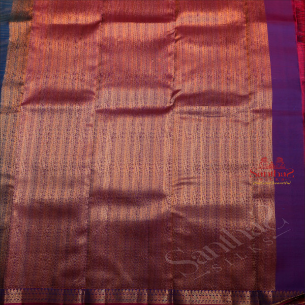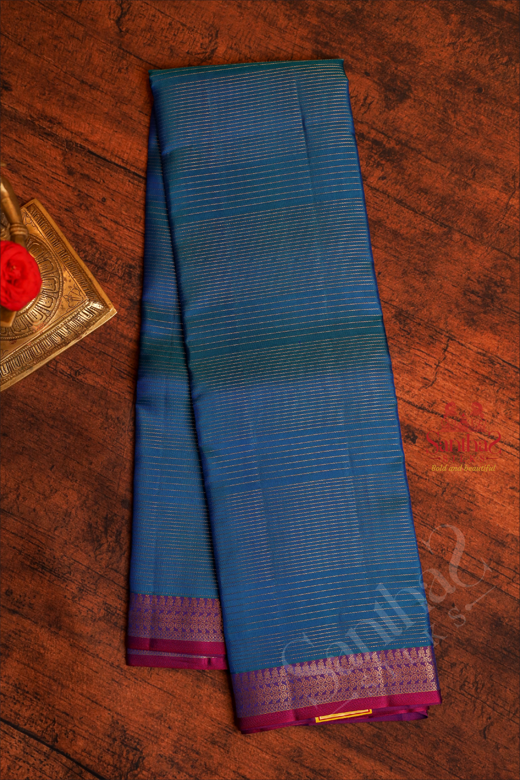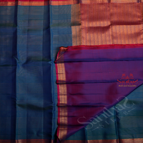 PRUSSIAN BLUE COLOUR STRIPS BODY WITH CONTRAST BLOUSE & BORDER