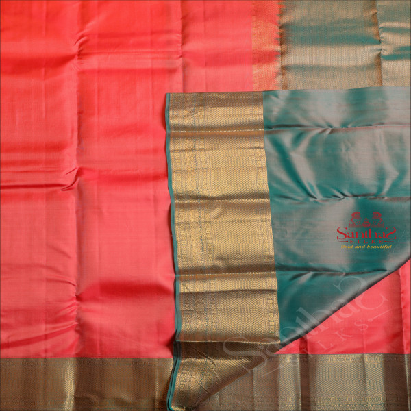 CORAL PEACH COLOUR BODY AND CONTRAST PALLU & BLOUSE