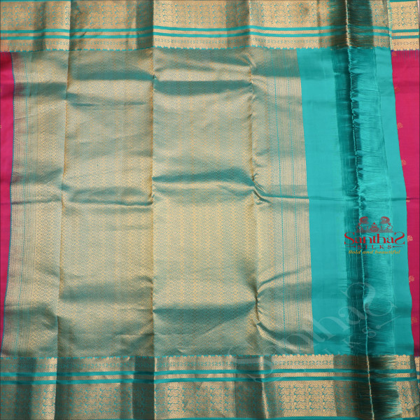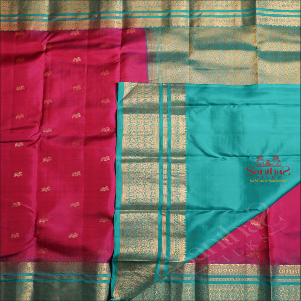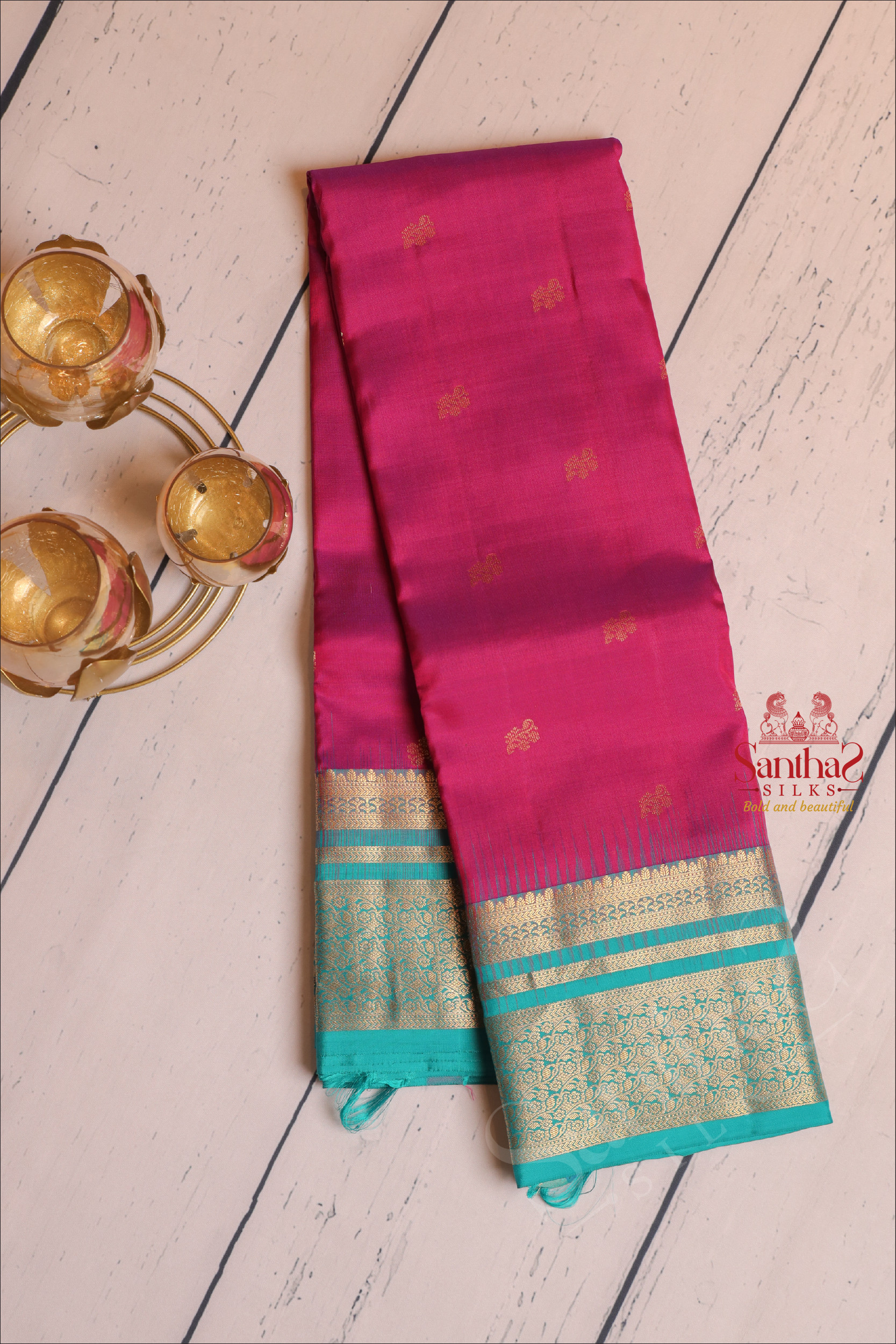 VIOLET COLOUR BODY WITH GOLDEN ZARI BUTTA WITH CONTRAST BLOUSE & BORDER