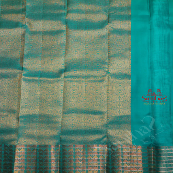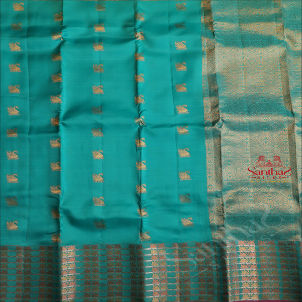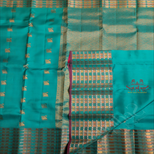 PARSIAN GREEN COLOUR BODY WITH GOLDEN ZARI CRANE MOTIFS AND SELF COLOUR PALLU & BLOUSE