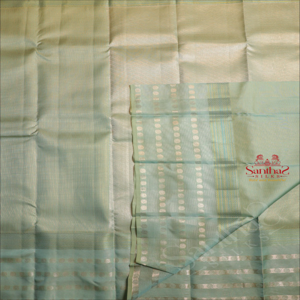 TIFFANY BLUE COLOUR CHECKED BODY WITH SELF BLOUSE & BORDER