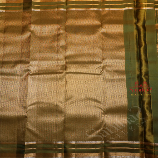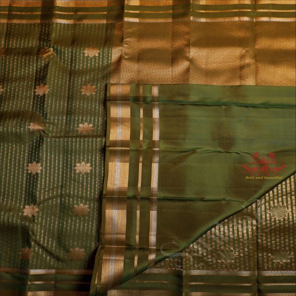 DARK MOSS GREEN COLOUR BODY WITH GOLDEN ZARI STRIPS & BUTTA AND SELF COLOUR PALLU & BLOUSE
