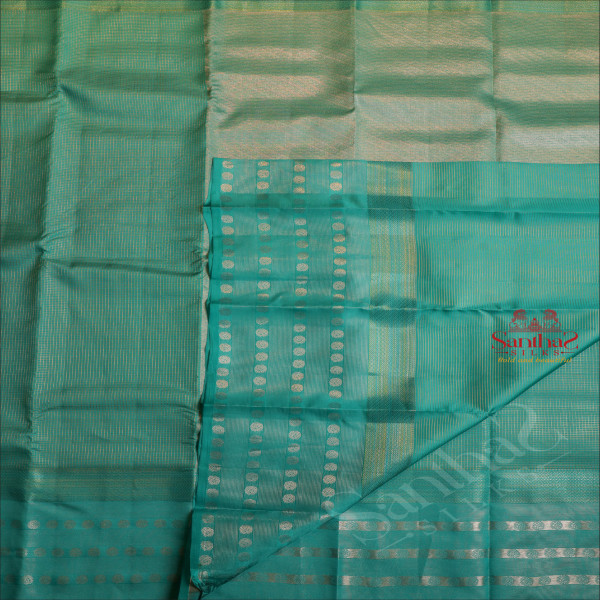 BRIGHT TURQUOSE BLUE COLOUR BODY WITH GOLDEN ZARI SMALL CHECKS AND SELF COLOUR PALLU & BLOUSE