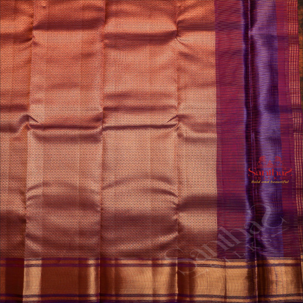 VIOLET COLOUR BODY WITH ZARI STRIPS AND GOLDEN BORDER WITH SELF BLOUSE