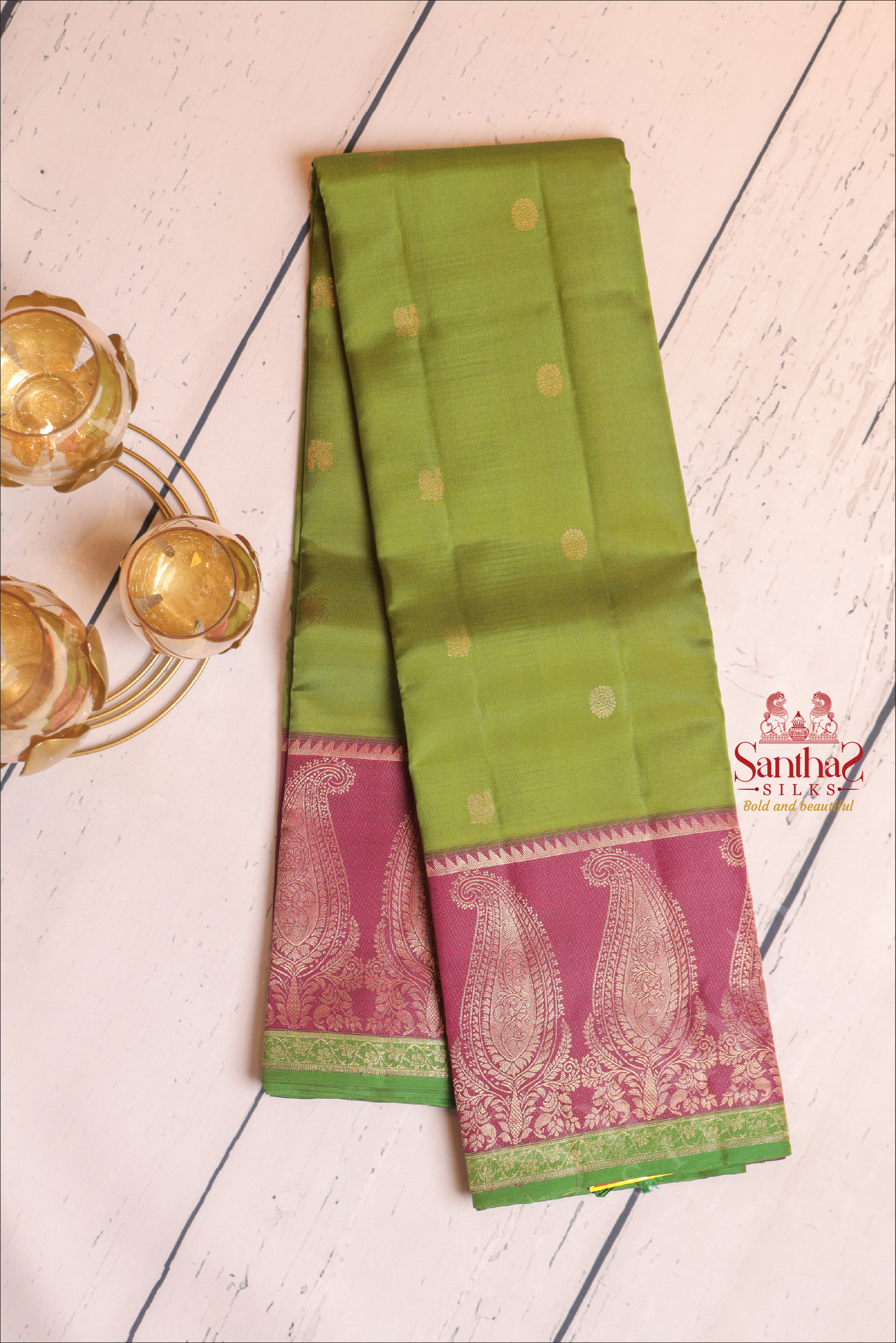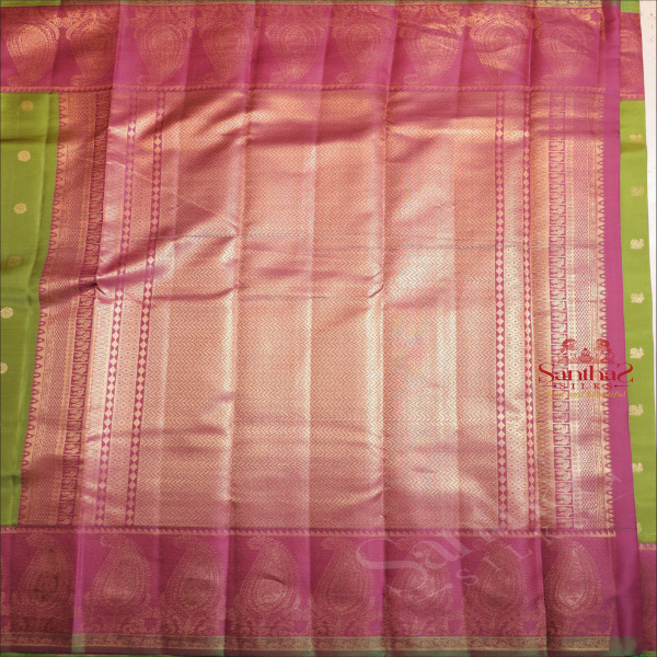 LAWN GREEN COLOUR BODY WITH GOLDEN ZARI ANNAM & CHAKRA MOTIFS AND CONTRAST PALLU & BLOUSE
