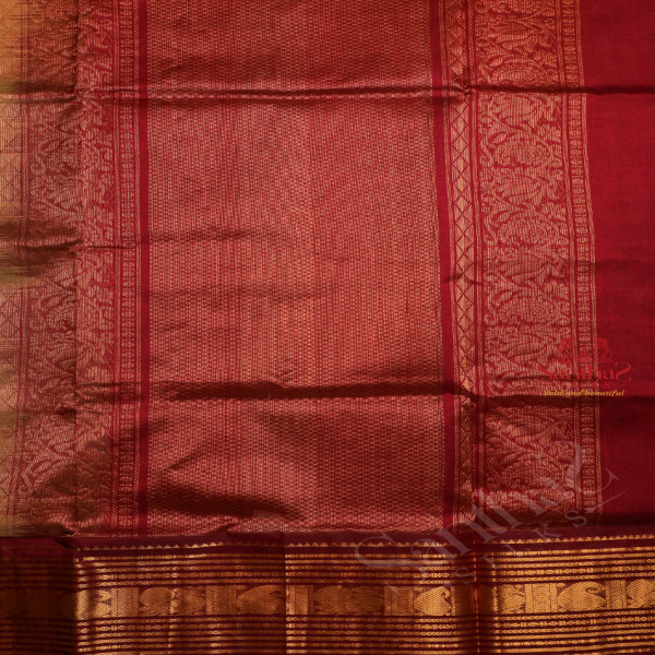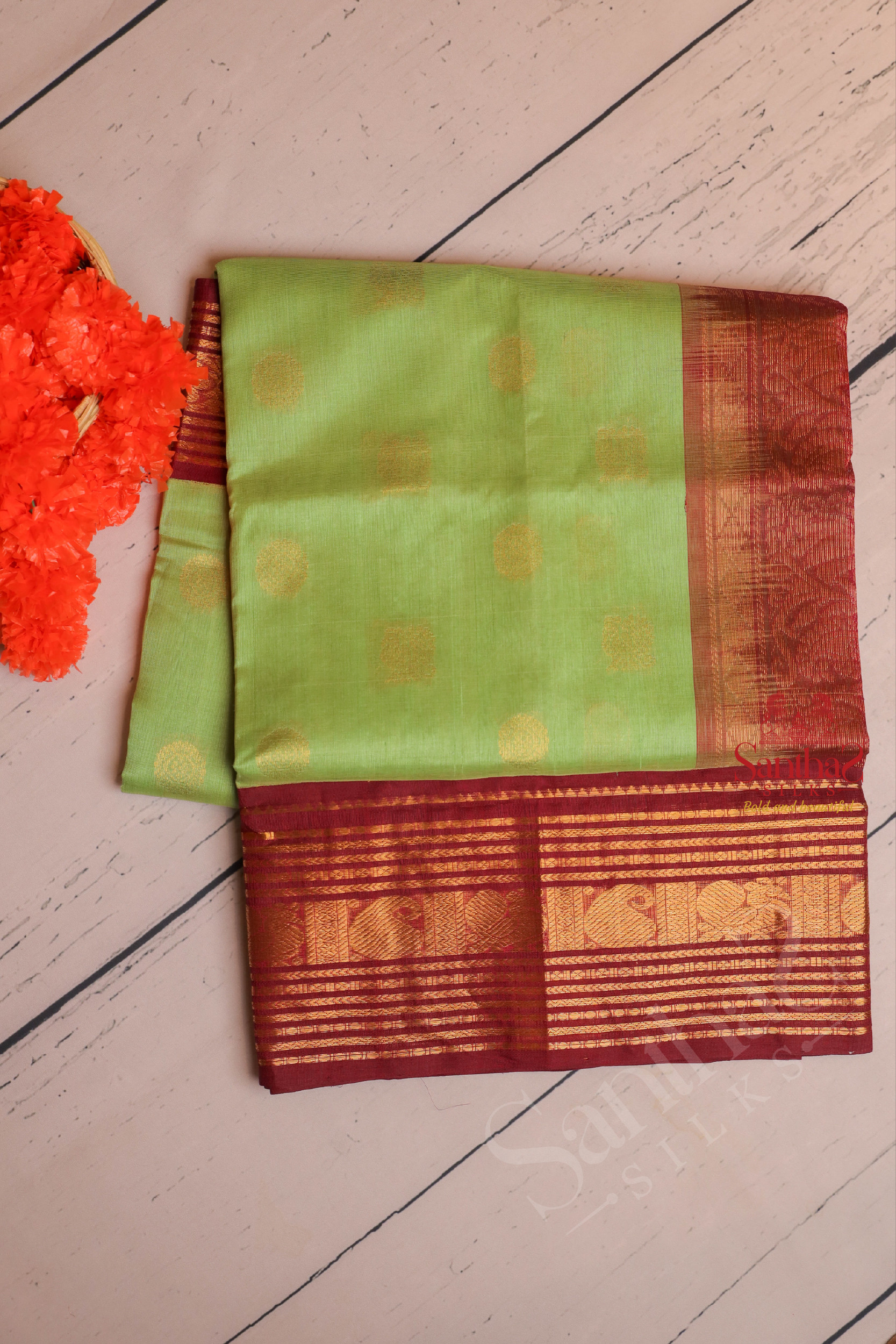 PISTHA GREEN COLOUR BODY WITH GOLDEN ZARI CHAKKARAM BUTTA WITH CONTRAST BLOUSE & BORDER
