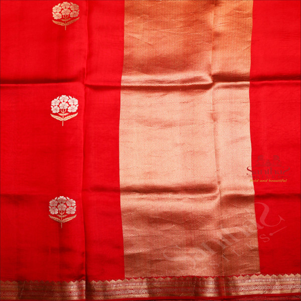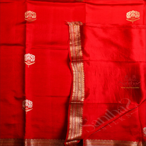 BLOOD RED COLOUR RAW MANGO SAREE WITH ZARI BUTTA WITH SELF BLOUSE