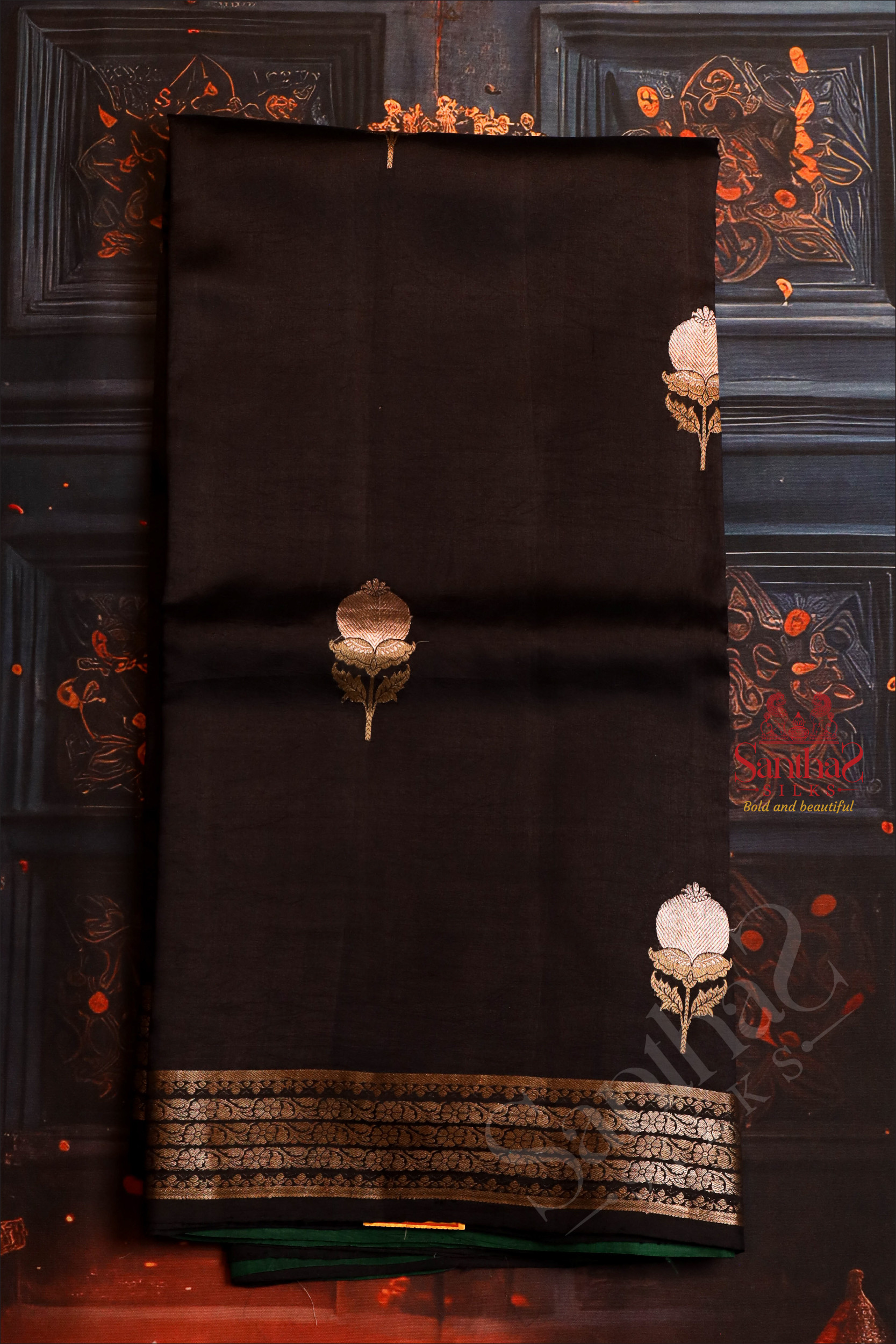 BLACK COLOUR RAW MANGO SAREE WITH ZARI BUTTA WITH CONTRAST BLOUSE
