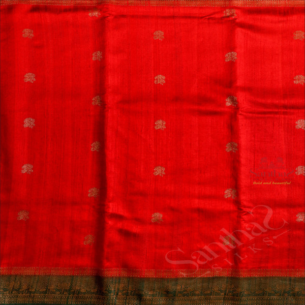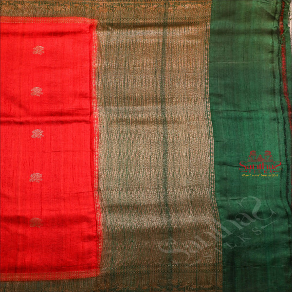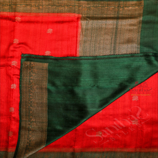 VENETIAN RED COLOUR RAW SILK SAREE BODY WITH GOLDEN ZARI BUTTAS AND CONTRAST COLOUR PALLU & BLOUSE