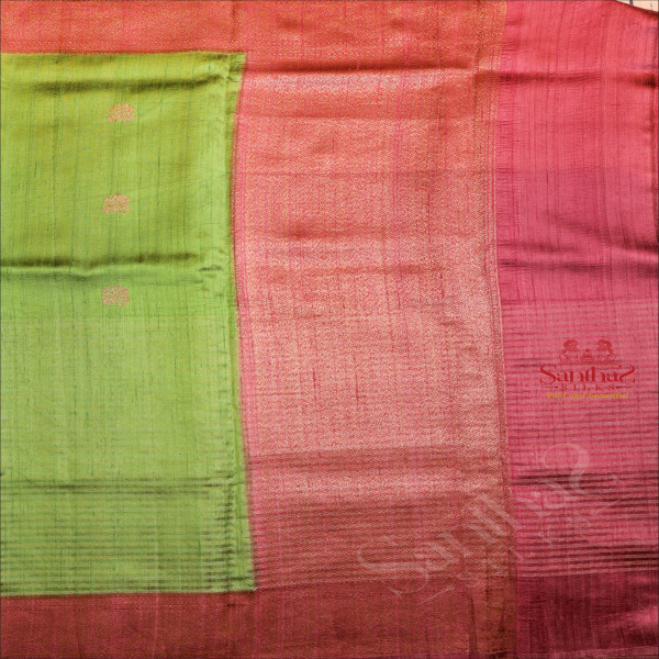 BOTTLE GREEN COLOUR RAW SILK SAREE BODY WITH GOLDEN & SILVER ZARI STRIPS & BUTTAS AND CONTRAST COLOUR PALLU & BLOUSE