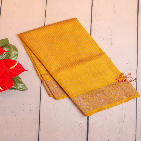 MUSTARD YELLOW COLOUR RAW SILK SAREE BODY WITH GOLDEN ZARI STRIPS AND SELF COLOUR PALLU & BLOUSE