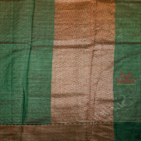 DARK GREEN COLOUR RAW SILK SAREE BODY WITH GOLDEN & SILVER ZARI STRIPS AND SELF COLOUR PALLU & BLOUSE