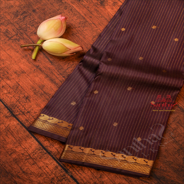 NAVY BLUE COLOUR STRIPS BODY WITH GOLDEN ZARI ANNAM CHAKKARAM BUTTA WITH SELF BLOUSE