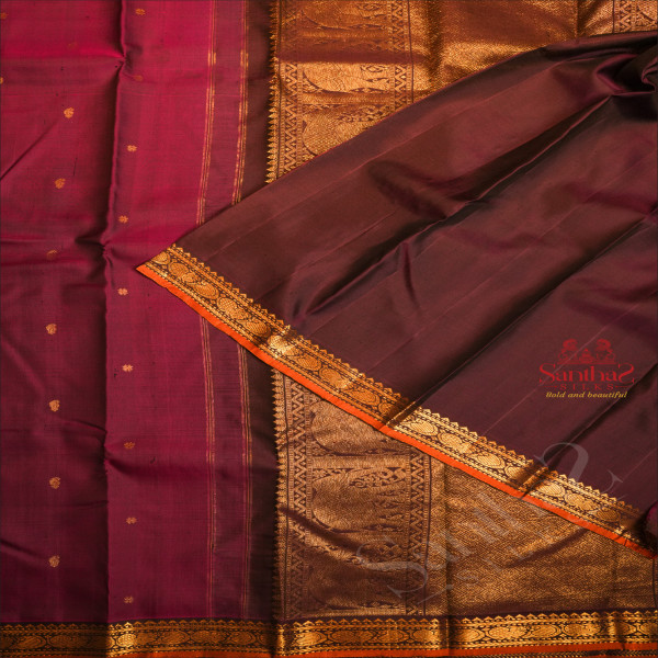 MAGENTA COLOUR BODY WITH GOLDEN ZARI BUTTAS AND CONTRAST COLOUR BLOUSE