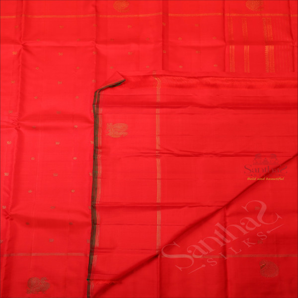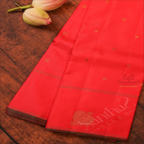 RED COLOUR BODY WITH GOLDEN ZARI ANNAM CHAKKARAM BUTTA WITH SELF BLOUSE & BORDER