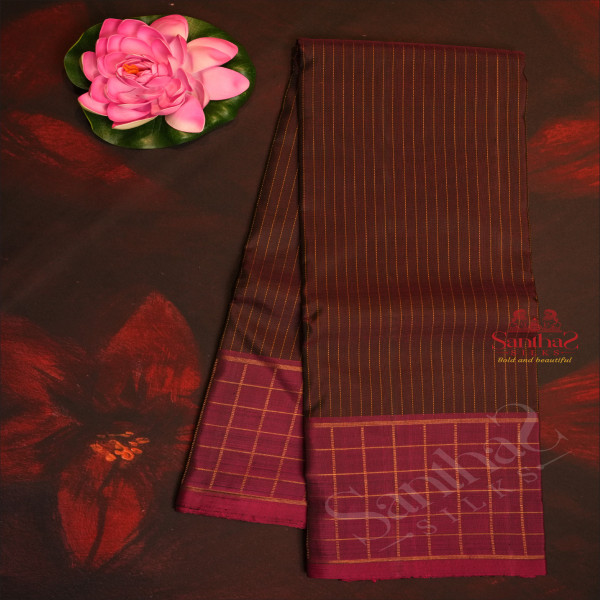 COFFEE BROWN COLOUR BODY WITH GOLDEN ZARI STRIPS AND CONTRAST COLOUR BLOUSE AND PALLU