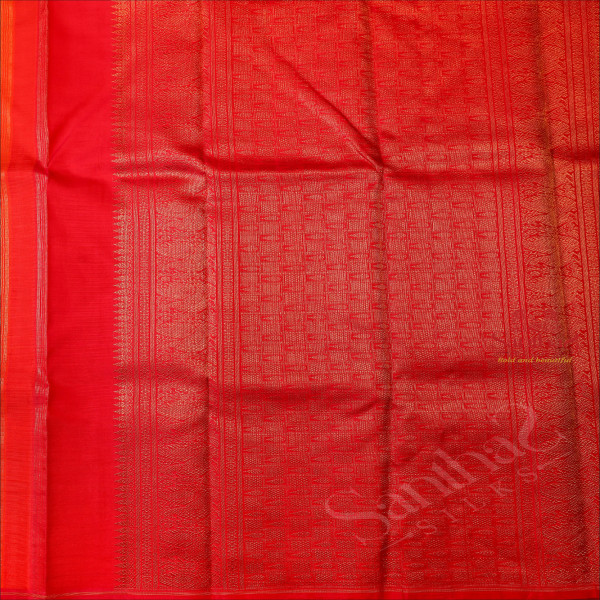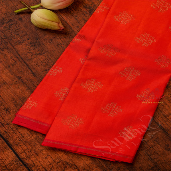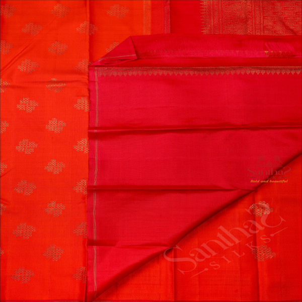 ORANGE COLOUR BODY WITH GOLDEN ZARI KOLAM BUTTA WITH CONTRAST BLOUSE & BORDER