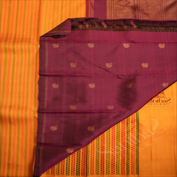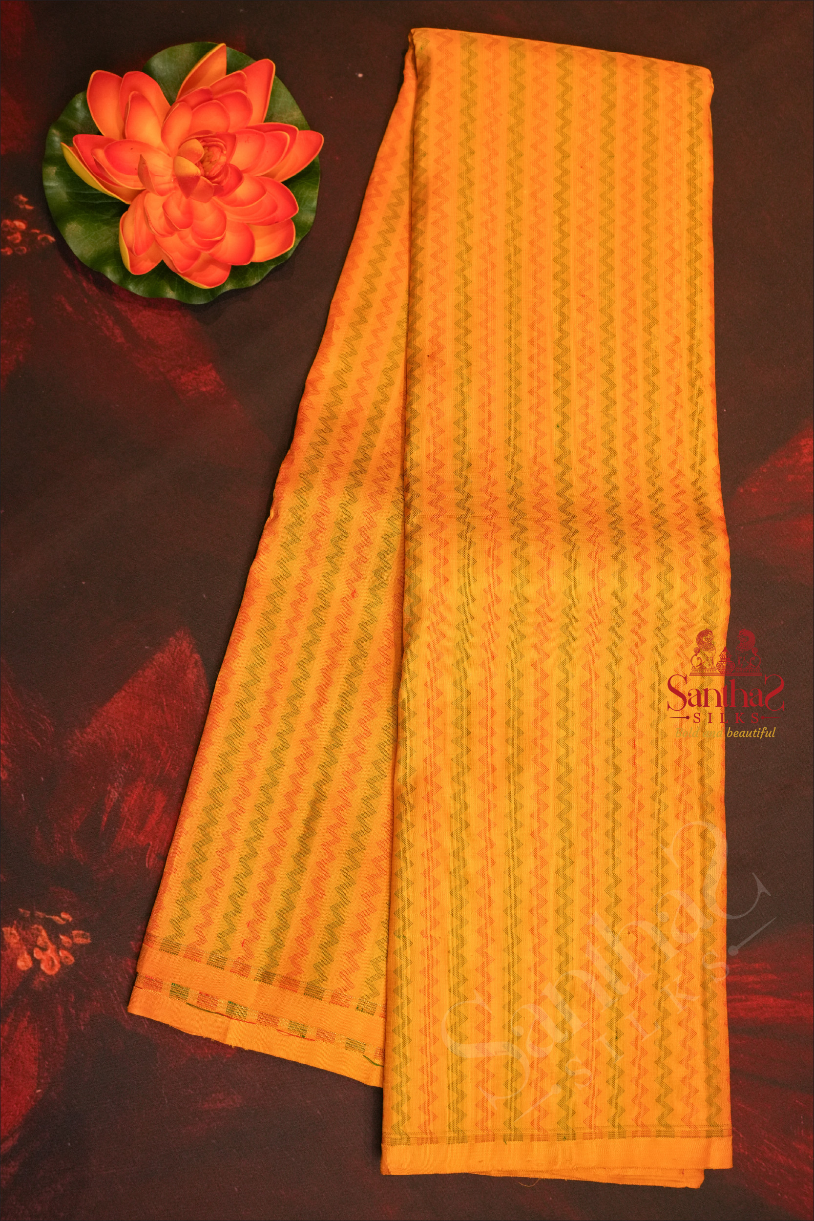 BORDERLESS AMBER YELLOW COLOUR FANCY PATTERN WITH CONTRAST BLOUSE