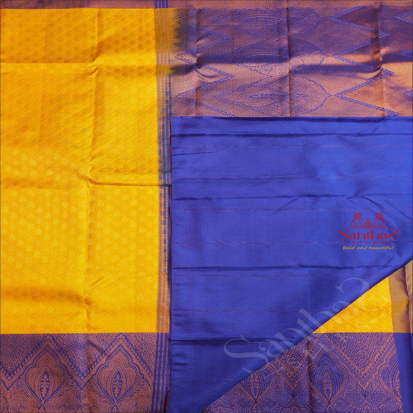 BRIGHT YELLOW COLOUR BODY WITH GOLDEN ZARI BUTTAS AND CONTRAST PALLU & BLOUSE