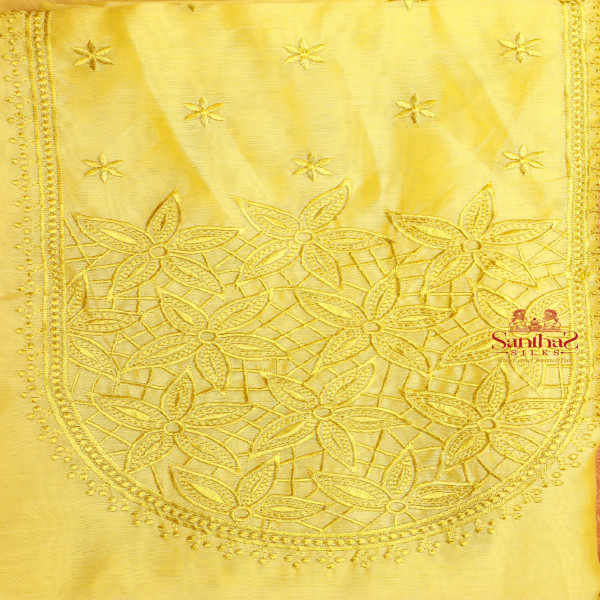 LEMON YELLOW SEMI TUSSAR UNSTITCHED SALWAR SUIT Top - 2.25 meters Bottom - 2 meters Shawl - 2.25 meters